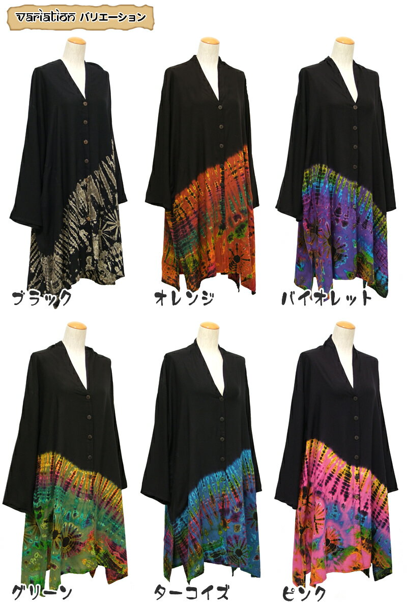 タイダイ染めレーヨンワイドロングブラウス【アジアンファッション/エスニックファッション/アジアン/エスニック/レディース/トップス/羽織り/大きいサイズ/ビッグシルエット/タイダイ染め】