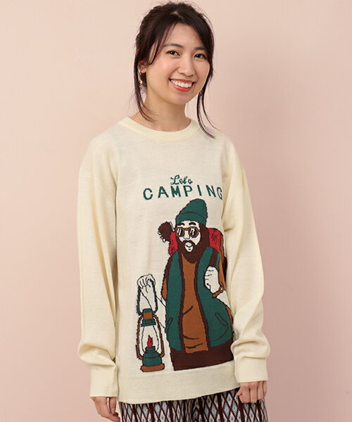【30%OFF★SALE】 ニット セーター プルオーバー トップス メンズ レディース ユニセックス 男女兼用秋 冬 長袖 ラウンドネック キャンプ おじさん ポップ クレイジーカラー 配色 カジュアル M L エスニック チチカカ TITICACA / おじさんニットプルオーバー mlsjba605