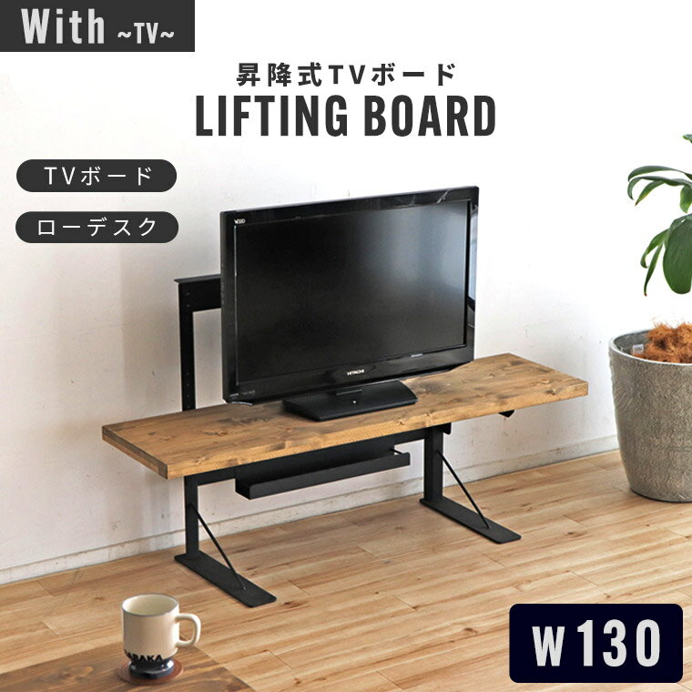 ローボード テレビボード 昇降 机 リフトテーブル 130cm 奥行40 昇降デスク 木製 無垢 ヴィンテージ おしゃれ シンプル リビング tv台 テレビ台 収納 スチール脚 アイアン 黒 リフティング 作業デスク ウィズ With TV130 昇降式