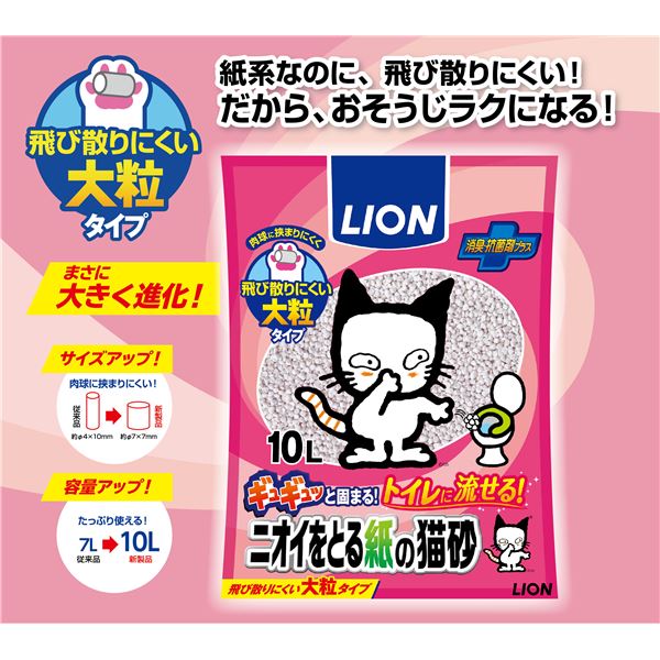 (まとめ)LION ニオイをとる紙の猫砂 10L (ペット用品)【×5セット】