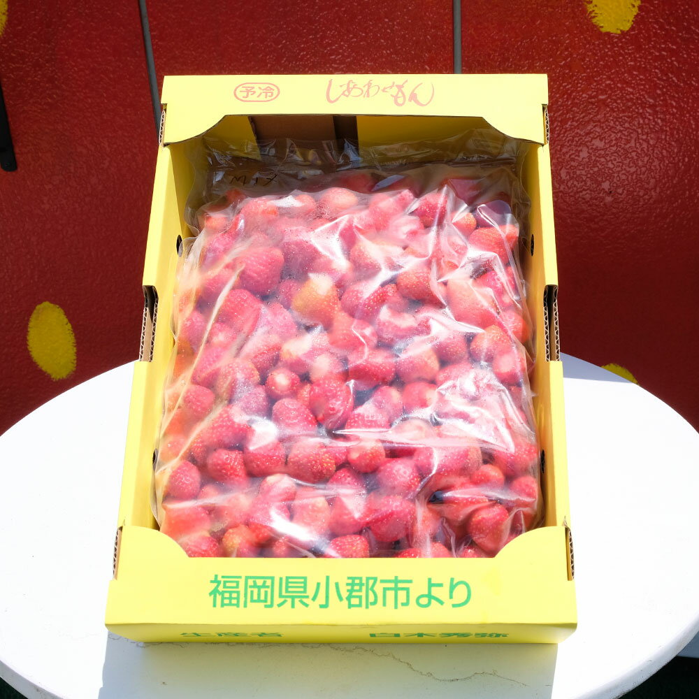 あまおう、とよのか、おいCベリー、さちのかが混ざっている冷凍いちご2kg入りです。
