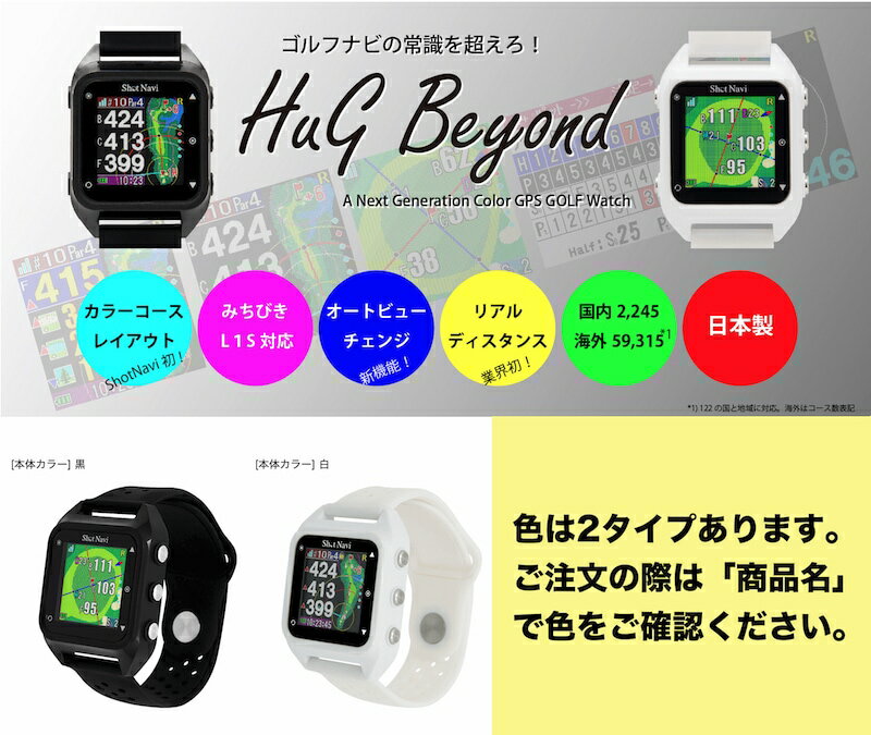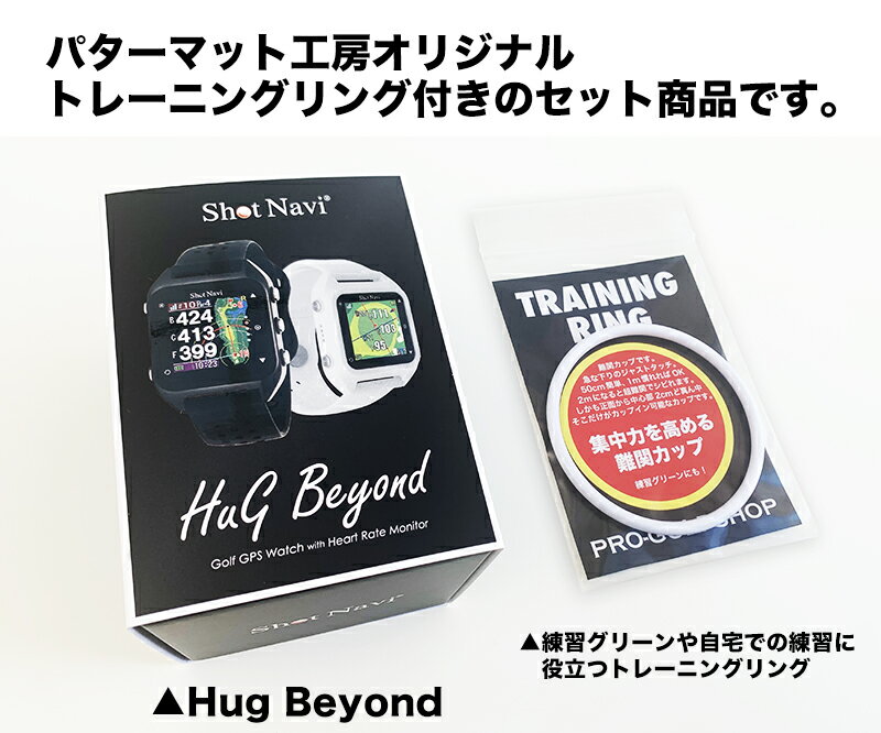 ▼その他のゴルフ用品はこちら ゴルフ用品 ギフト GPS 距離計 計測 ウォッチ 測定器 ゴルフナビ [ゴルフ ナビ ショットナビ ゴルフウォッチ 距離計 腕時計 測定器 GPS]【関連製品のご案内】 名称 Shot Navi HuG Beyond ショットナビハグビヨンド[黒]<起動画面CoCoRoちゃん 芸西村オリジナルモデル> &[トレーニングリング付きセット] セット内容 ・Shot Navi HuG Beyond ショットナビハグビヨンド[色:黒] (起動画面に芸西村オリジナルキャラクター) ・充電用ケーブル ・取り扱い説明書 ・保証書 ・パット練習用トレーニングリング同梱 本体仕様 寸法:38.0 x 42.3 x 13.1mm 重量:56g (ベルト部分を含む) ディスプレイ:反射型カラー液晶 バッテリー:リチウムイオン (充電時間4時間) 稼働時間:時計モード 最大30日(活動量オフ) GPSナビ使用:8時間 歩数計使用時:最大10日(歩数計) 心拍数計測時:最大1.5日間(心拍・歩数) カラー:黒(他に白タイプもあり) 防水:IPX8 / 3ATM (生活防水程度) コースデータ:世界80か国、5万コース以上 提供元 パターマット工房 ▼その他のゴルフ用品はこちら 【関連製品のご案内】 [ゴルフ ナビ ショットナビ ゴルフウォッチ 距離計 腕時計 測定器 GPS]