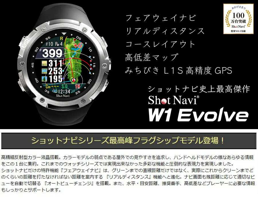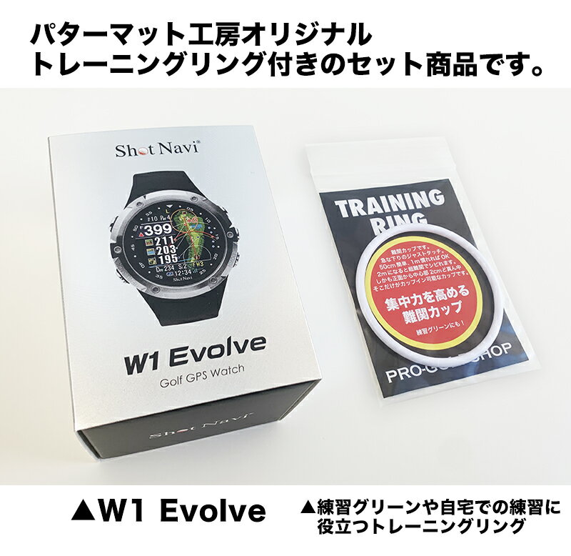 ▼その他のゴルフ用品はこちら ゴルフ用品 ギフト GPS 距離計 計測 ウォッチ 測定器 ゴルフナビ [ゴルフ ナビ ショットナビ ゴルフウォッチ 距離計 腕時計 測定器 GPS]【関連製品のご案内】 名称 Shot Navi W1 Evolve ショットナビW1 エボルブ [白]<起動画面CoCoRoちゃん 芸西村オリジナルモデル> &[トレーニングリング付きセット] セット内容 ・Shot Navi W1 Evolve ショットナビW1 エボルブ [色:白]<起動画面CoCoRoちゃん 芸西村オリジナルモデル> (起動画面に芸西村オリジナルキャラクター) ・充電用ケーブル ・取り扱い説明書 ・保証書 ・パット練習用トレーニングリング同梱 本体仕様 寸法:直径47.5m x 16.2mm (ベルト除く) 重量:74g ディスプレイ:反射型カラー液晶 バッテリー:リチウムイオン (充電時間 PC経由4時間) 稼働時間:時計モード 最大30日(活動量オフ) GPSナビ使用:10時間 歩数計使用時:最大10日(歩数計) カラー:白(他に黒タイプもあり) 防水:IPX7 / 3ATM (生活防水程度) コースデータ:世界122の国と地域、59,000コース以上 (海外コースのレイアウトデータは別途ダウンロードが必要です 提供元 パターマット工房 ▼その他のゴルフ用品はこちら 【関連製品のご案内】 [ゴルフ ナビ ショットナビ ゴルフウォッチ 距離計 腕時計 測定器 GPS]