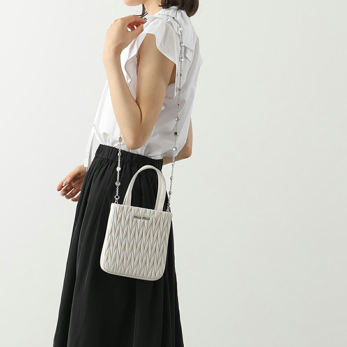 ⇒ 詳しくはこちら 商品説明 ・ミュウミュウを代表する上質な「マテラッセ」モチーフのキルティングレザー ・クリスタル付メタルのショルダーストラップ ・内側メインコパーメントにオープンポケットが備えられた収納スペース ・デイリーはもちろんパーティーバックやフォーマルなシーンでも活躍 ・ショルダーストラップ取り外し可能 注意事項 ※天然皮革を使用している為、輸入時より素材の性質や製造段階で生じる微細な傷、スレ、汚れ、シワや、金具部分は細かなスレ、くすみが見受けられる場合がございます。