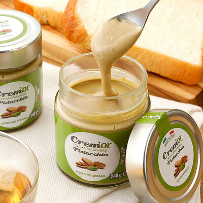 パンと一緒に! プレーンスコーンやトーストや甘みが少なくシンプルな味わいのパンや、少し塩味のあるパンが相性抜群です!アイスと一緒に! アイスクリームにかけてお召し上がりいただくとピスタチオブレッドが固まり、パリッとした食感に。
