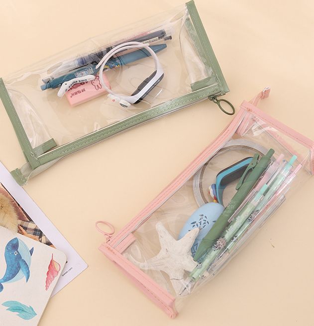 送料無料 ペンケース ペンポーチ 筆箱 文房具入れ クリア 透明 長方形 ファスナー 女の子 男の子 メンズ レディース シンプル 無地 三角立ち 自立 大容量 化粧ポーチ 小物収納 ペンバッグ 防水 筆入れ おしゃれ 文具 学生 学校 オフィス 事務