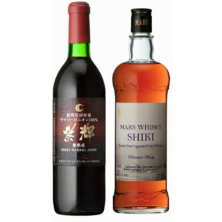 原材料名:モルト、グレーン アルコール分:40% 内容量:750ml 製造者:本坊酒造株式会社 商品説明 長野県宮田村で収穫されたヤマソービニオンぶどうから造られたワイン「紫輝」樽熟成2020と「紫輝」樽熟成2020に使用した樽で追加熟成(フィニッシュ)させたブレンデッドウイスキー「SHIKI」の豪華なセットです。