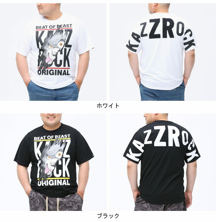 大きいサイズ メンズ KAZZROCK ORIGINAL (カズロックオリジナル) ウルフプリント クルーネック 半袖 Tシャツ Tシャツ クルー 半袖 プリント 春 夏 ロック オオカミ 221388ZD