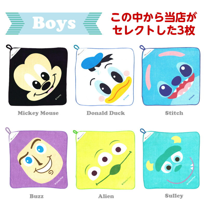Disney ディズニー ループタオル ◆ハーフセット【1セット3枚入】12種類のキャラクターのループタオルから当店が3枚セレクト! [ボーイズ用/ガールズ用] ミッキー ミニー スティッチ プーさん チップ ハンカチ タオル 30cm×30cm