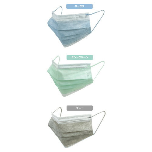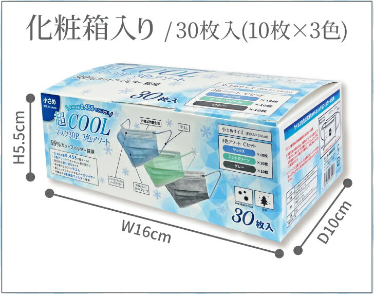 小さめ超COOLマスク 30枚入(10枚×3色) 3色アソート Cセット(サックス10枚、ミントグリーン10枚、グレー10枚) FLT-197
